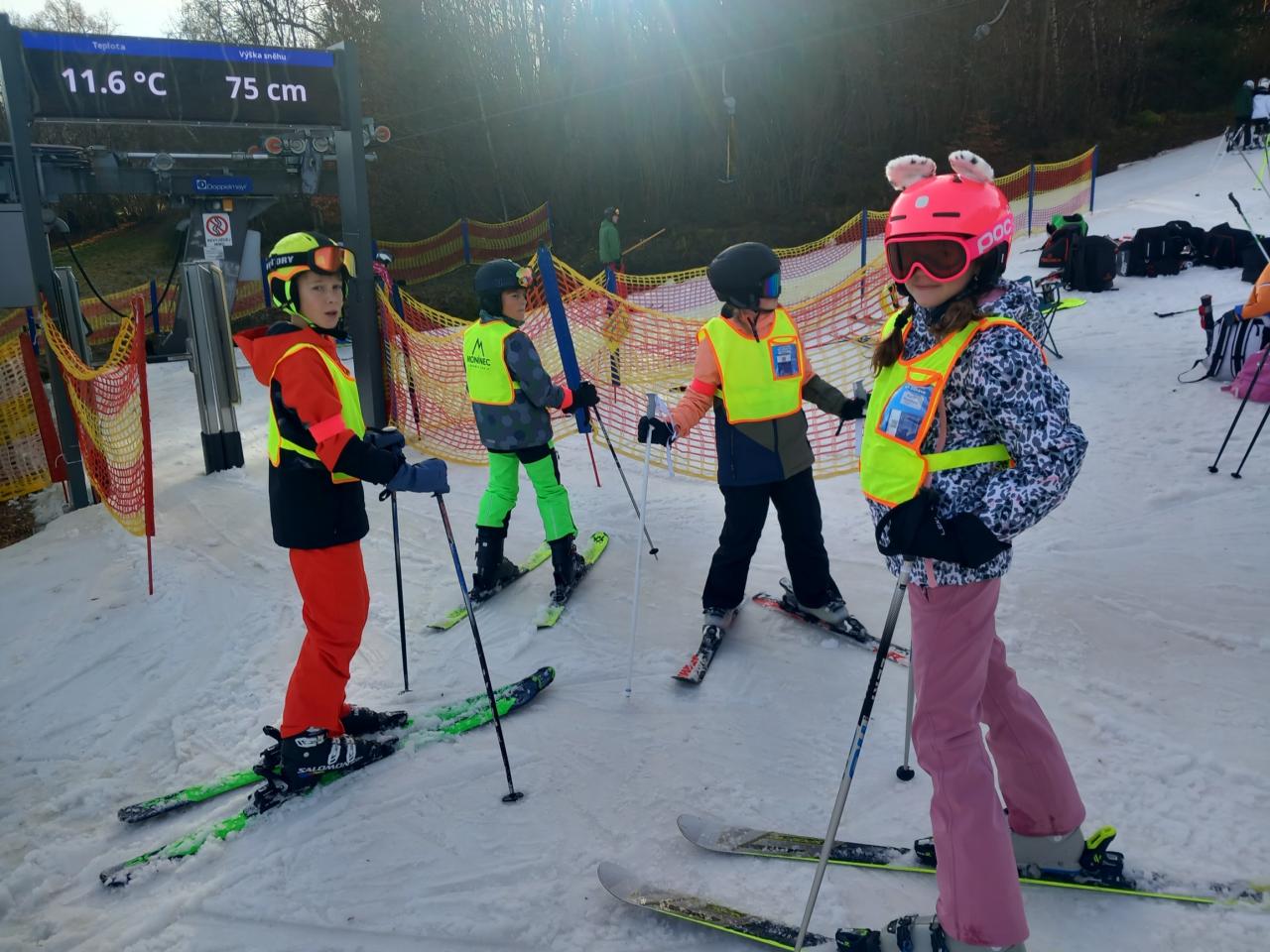 Žáci si užili slunečné počasí, které po celé dopoledne dodávalo energii i dobrou náladu, a díky dostatečné vrstvě sněhu byla sjezdovka skvěle připravená. Podmínky tak umožnily všem dětem naplno využít čas na svahu.