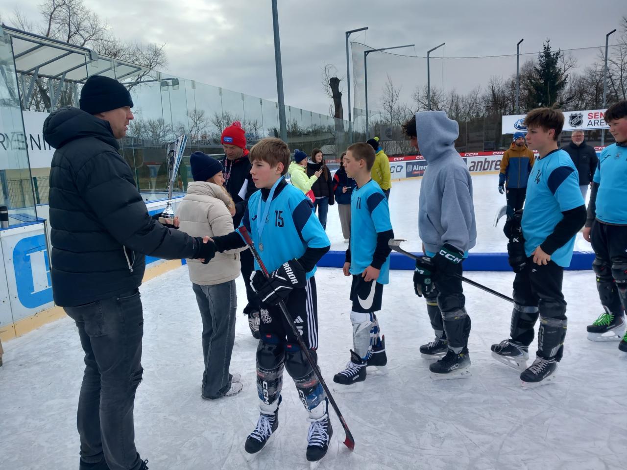 Počasí nám během dne připravilo pestrou podívanou – chvílemi sněžilo, jindy se mezi mraky prodíralo slunce a led se třpytil v jeho paprscích. Ani proměnlivé podmínky však neubraly nic na sportovním nasazení a skvělé atmosféře, která celý turnaj provázela.
