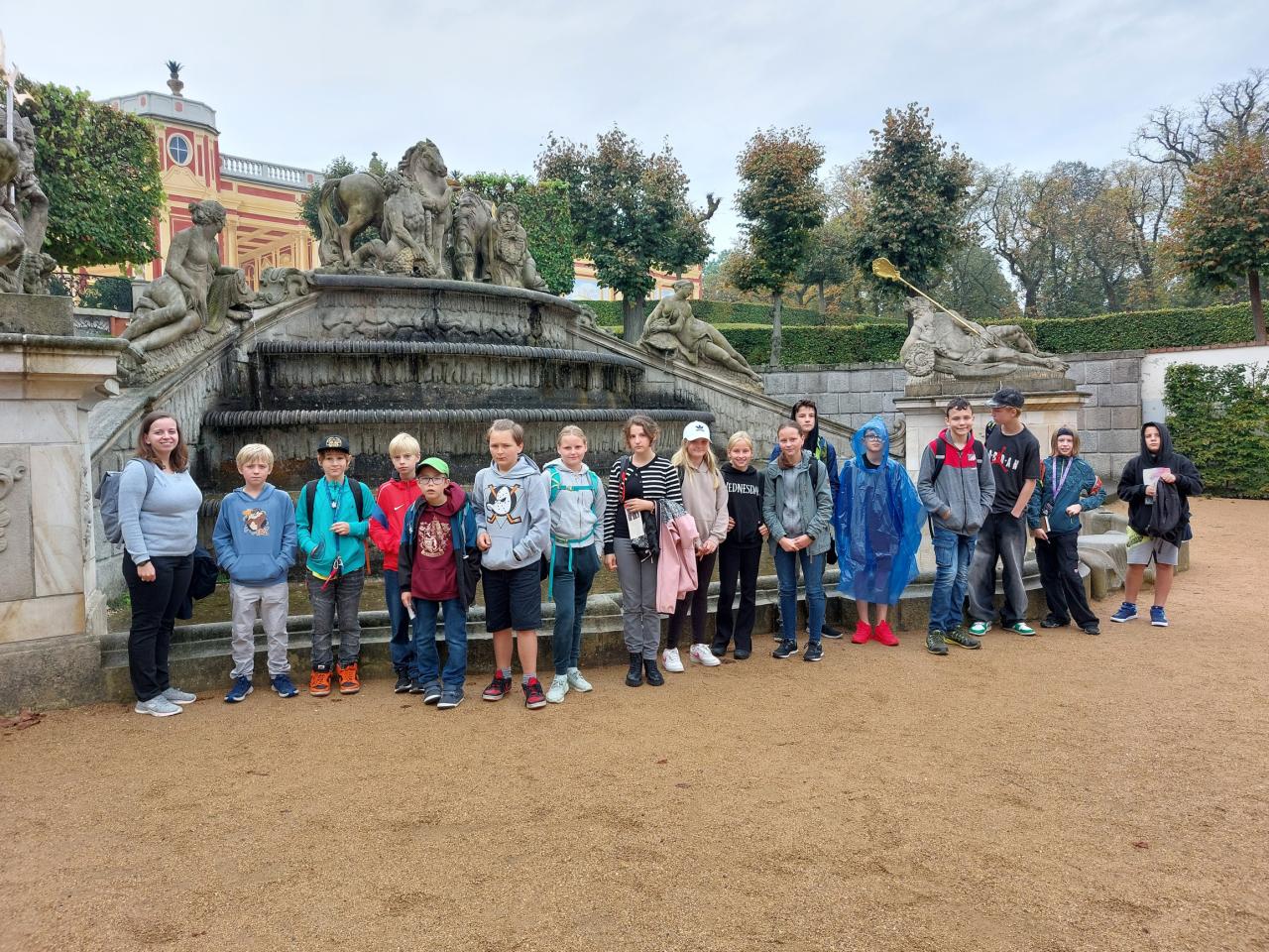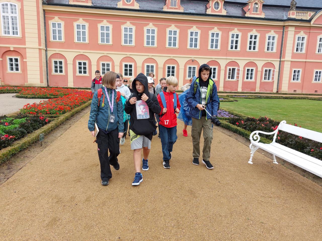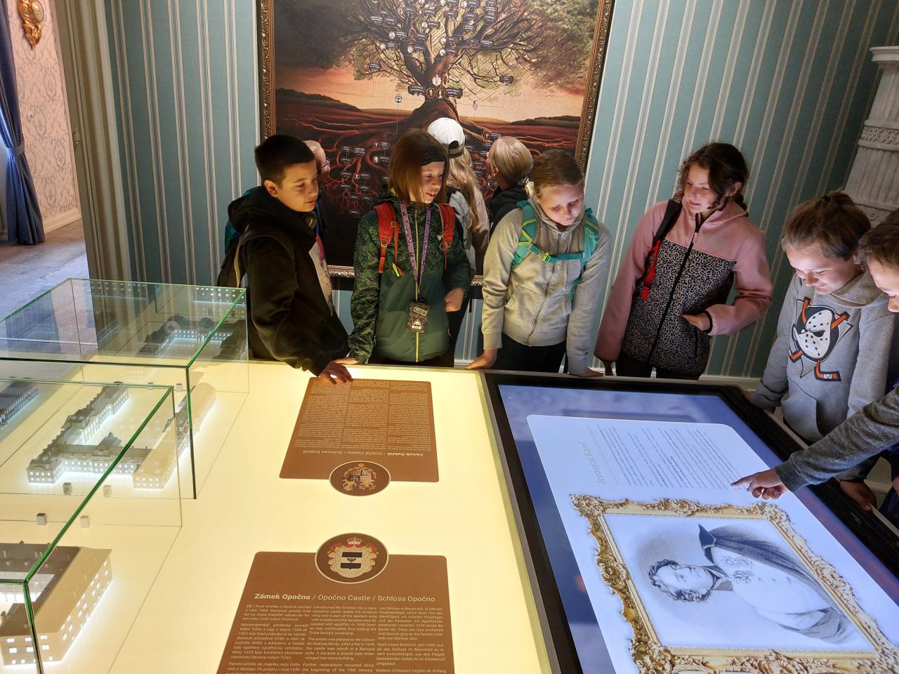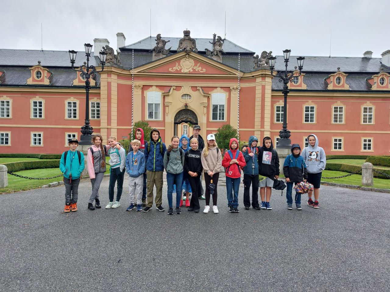 Na začátku nás paní průvodkyně seznámila s historií zámku, kterou jsme si vyslechli v krásném Zrcadlovém sále. Poté si žáci sami prošli novou interaktivní expozici v prvním patře zámku. Po prohlídce jsme prošli francouzskou zahradou a prohlédli si oranžérii a expozici věnující se vodě a lesu. Akci jsme zakončili svačinou v Anglickém parku.