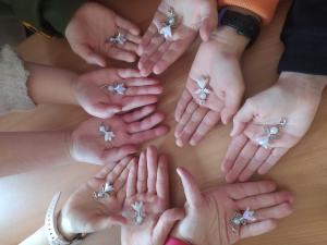 V oddělení 3., 8. a 9. proběhlo už druhé vánoční tvoření. Poprvé si děti na dřevo namalovaly vánoční obrázek. Při druhém tvoření si z korálků a komponentů sestavily andělíčka - přívěsek. Práce je bavila a moc si to užily.