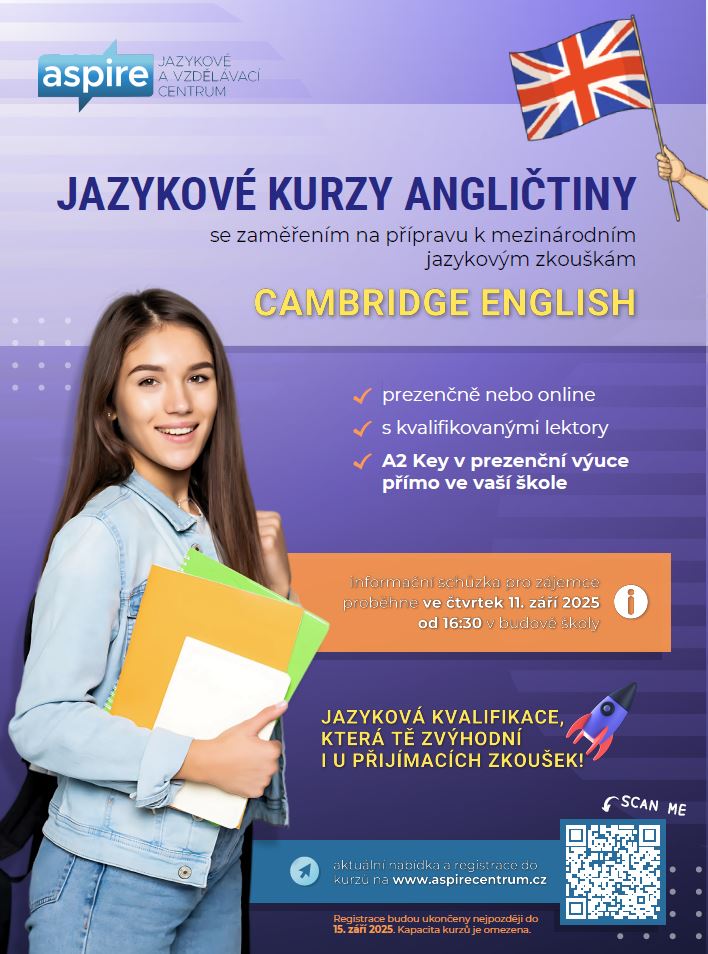 ✅ Výhoda navíc: Certifikáty Cambridge English od úrovně A2 zvyšují šance při přijímacím