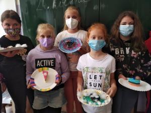 Děti ze IV. C vyráběly z kuchyňských houbiček zákusky, dortíky a další dobroty. I když se jednalo o pouhé napodobeniny skutečných zákusků, byly jejich výrobky hodně povedené a přímo lákaly k ochutnání.