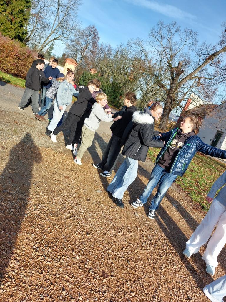 Hodinu jsme začali krátkou rozcvičkou, která nás příjemně naladila a probudila. Poté následovaly aktivity zaměřené na spolupráci, komunikaci a stmelení kolektivu. Žáci se zapojili s nadšením a ukázali, že týmová práce jim rozhodně není cizí.