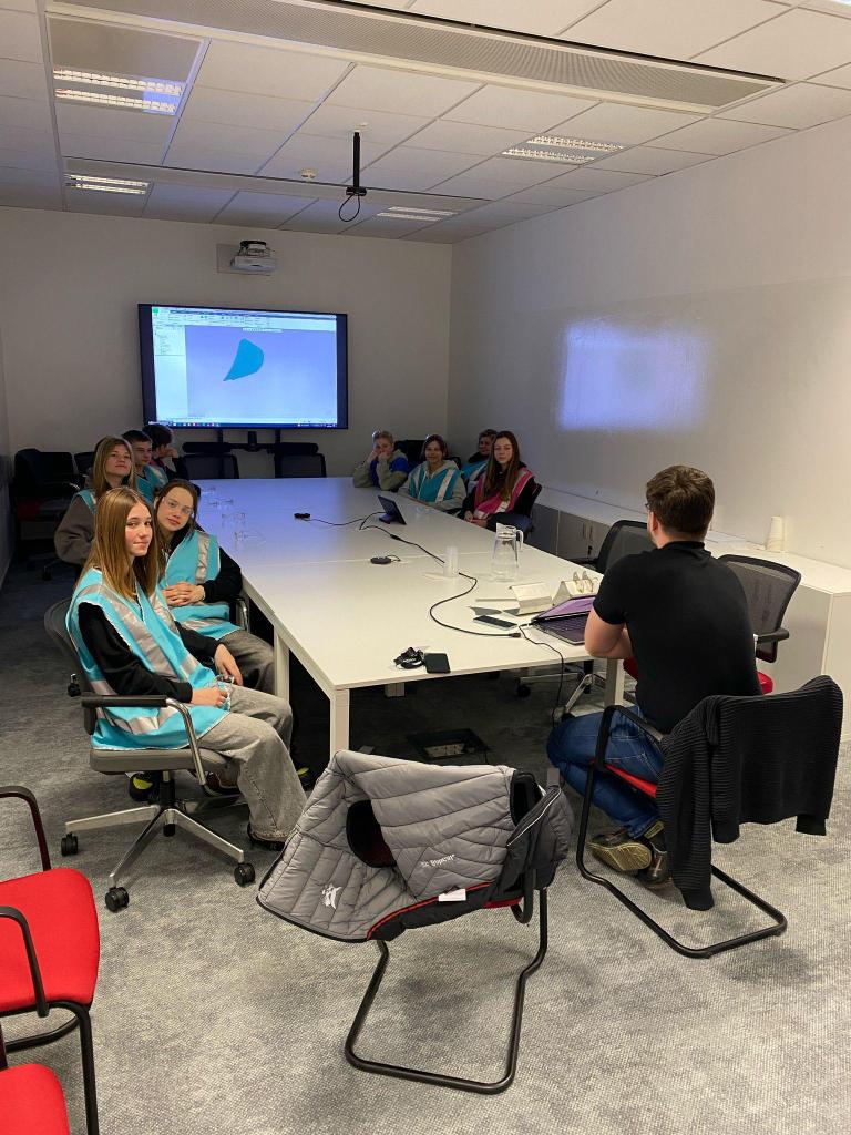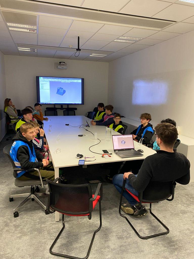 Během prohlídky měli žáci možnost sledovat jednotlivé fáze výroby – od řezání a svařování kovových dílů, přes montáž hydraulických systémů, až po finální kontrolu kvality. Sledovali též nelehkou lidskou práci přímo v procesu. Poté žáci viděli i druhou stránku výroby - navrhování strojů v počítačových programech a propojení s učivem z fyziky a matematiky.