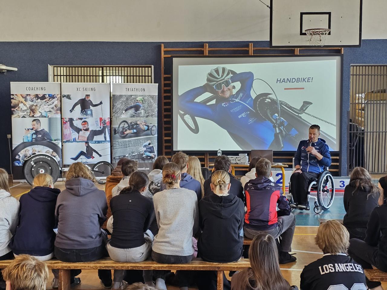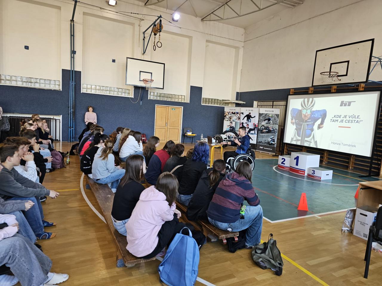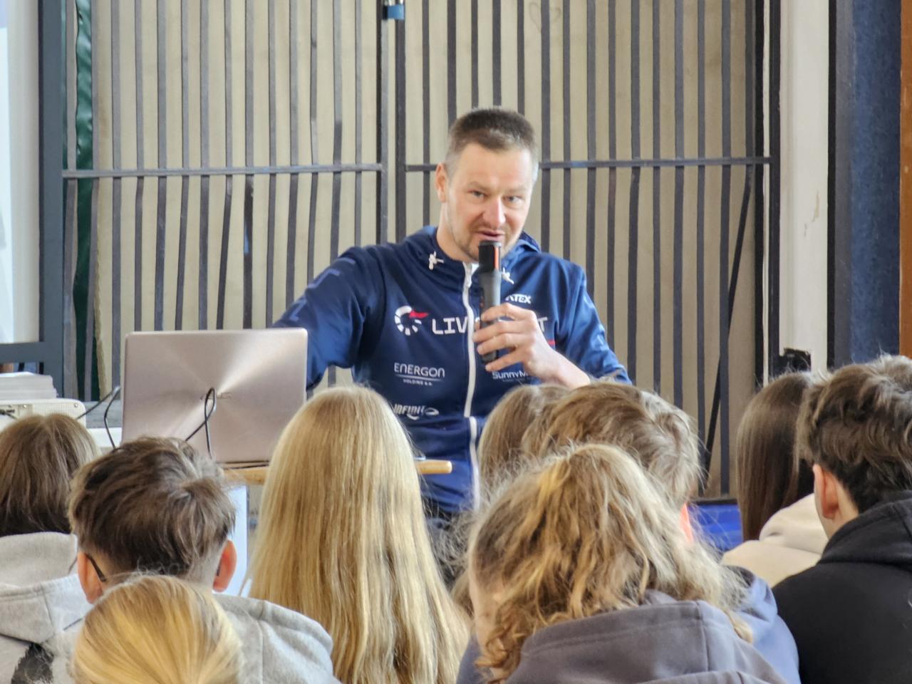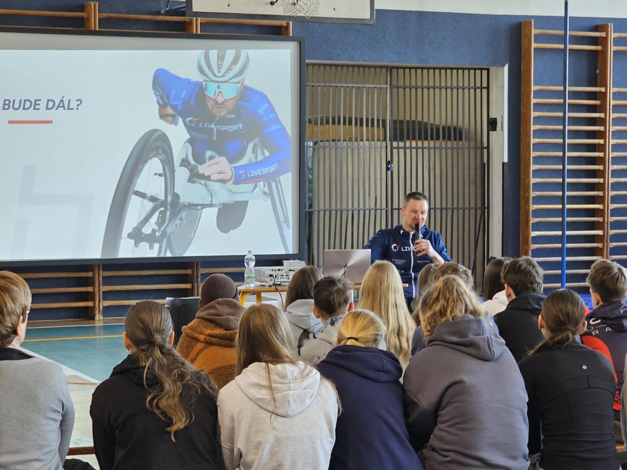 Jeho životní příběh, sportovní kariéra i přístup k překonávání překážek se staly inspirací pro desítky našich žáků, kteří se zúčastnili besedy.