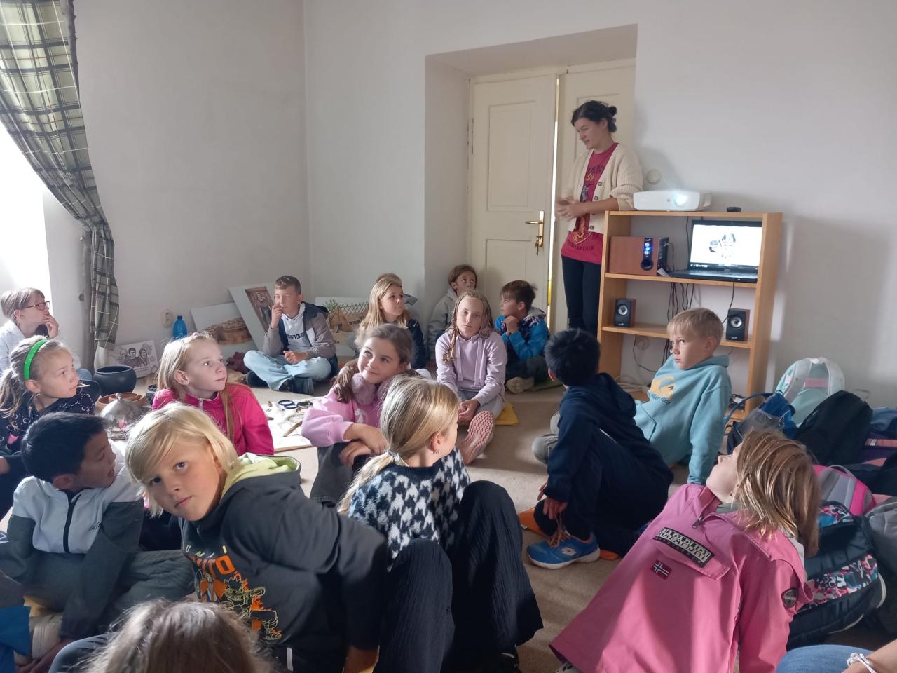 Poslední zářijový den jsme společně s žáky IV.A a IV.B navštívili Zámek Nižbor a sklářské muzeum. Děti si v zámku mohly vyzkoušet keltskou kresbu a v muzeu pozorovaly výrobu skla.