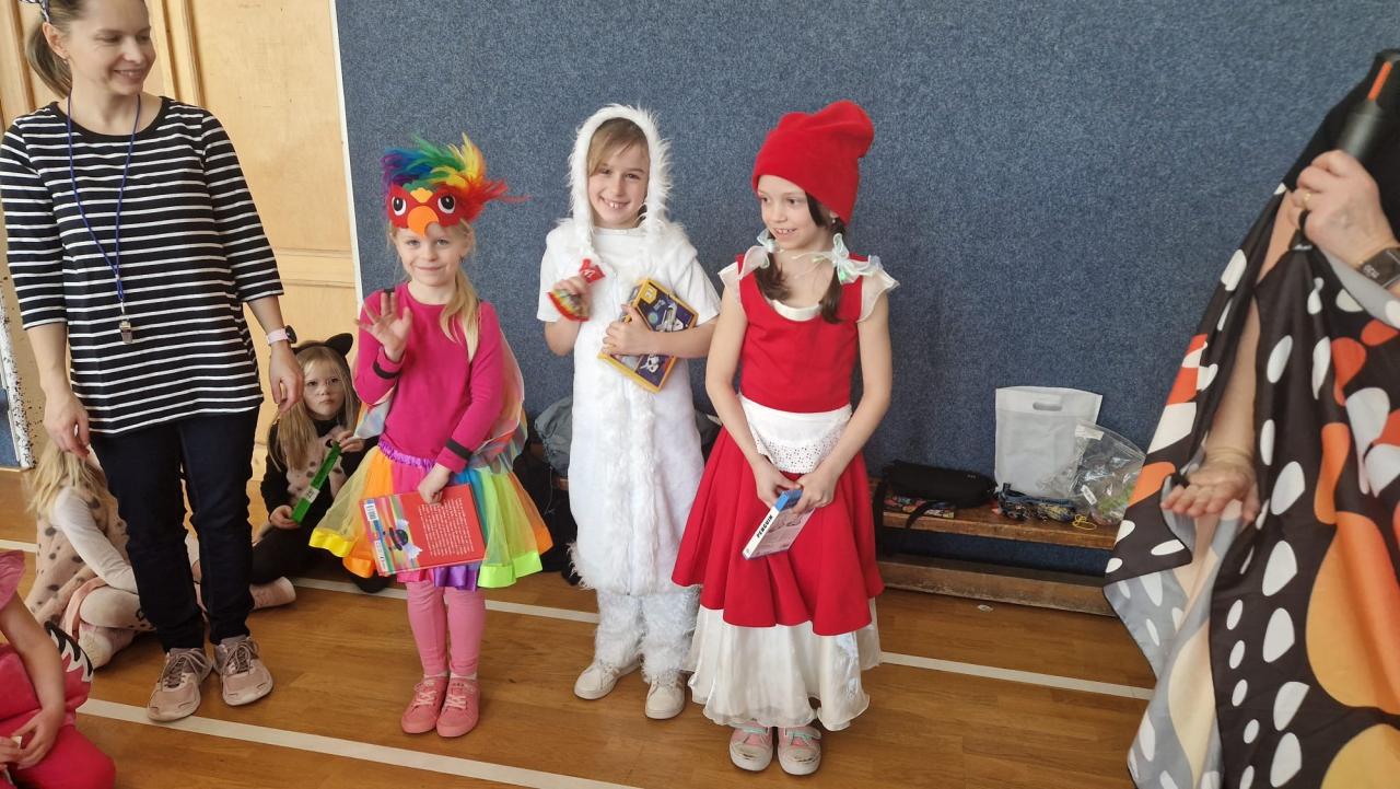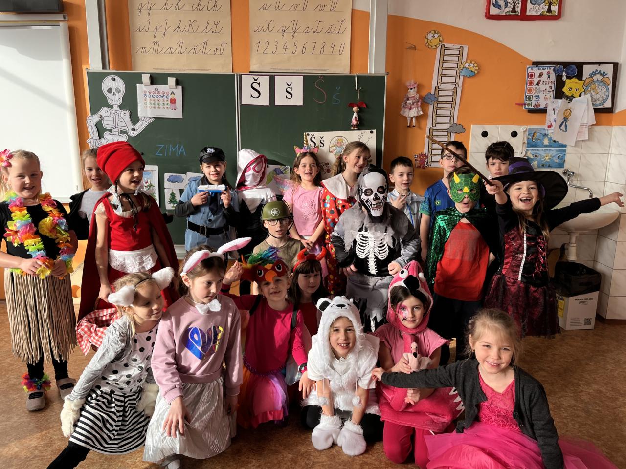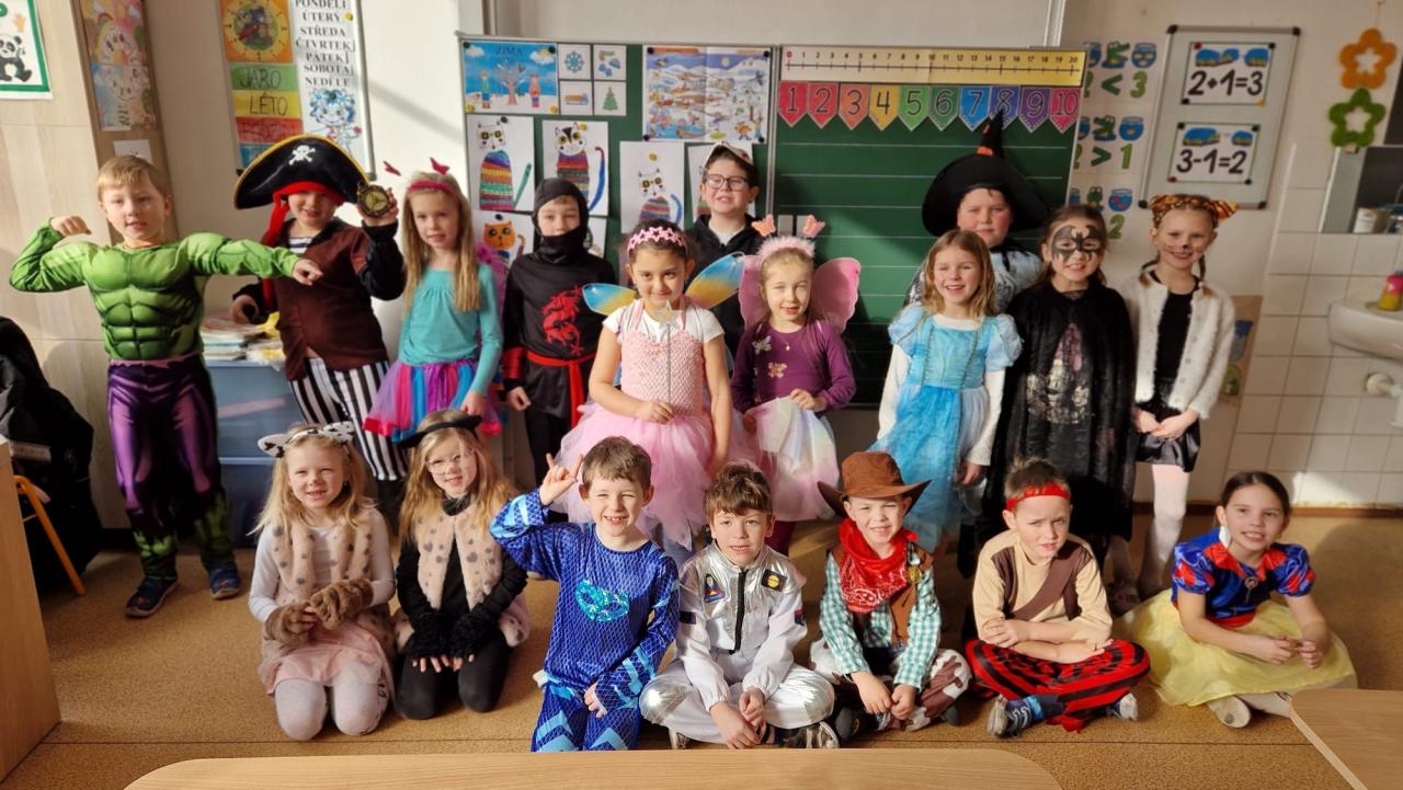 Dne 24.2. jsme si v našich třídách 1.A a 1.C užili veselý masopustní den plný zábavy. Děti i paní učitelky s paní asistentkou přišly do školy v krásných a nápaditých kostýmech. Viděli jsme papouška, víly, ledního medvěda a další postavy.