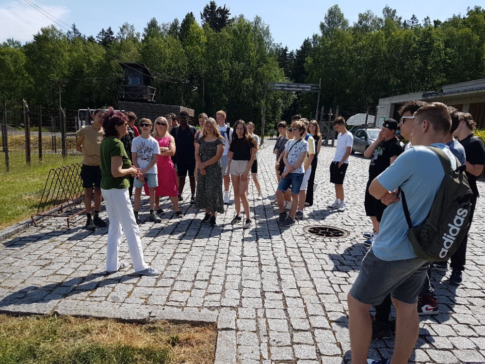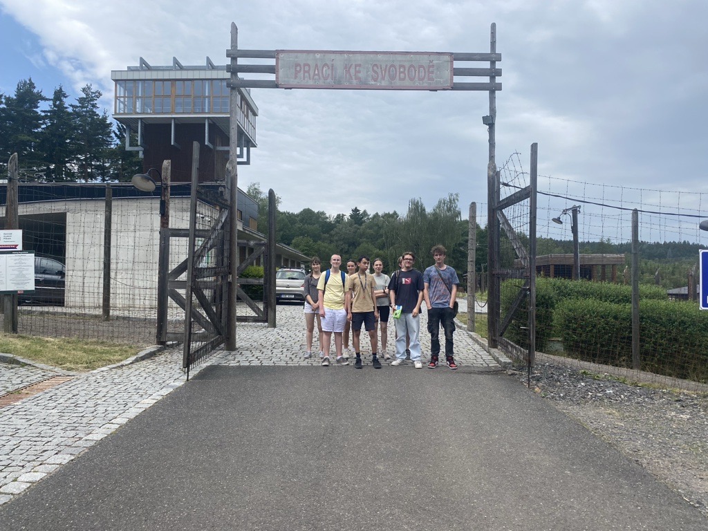 Jen několik kilometrů odsud a pár let poté vznikl tábor nucených prací, a následně vězení pro odpůrce komunistického režimu. I toto místo - nyní památník Vojna v Lešeticích - naši žáci prozkoumali. Měli možnost prohlédnout si bunkr, cely, marodku a další místa, která kromě vězeňského života odkazují na historii těžby uranu.