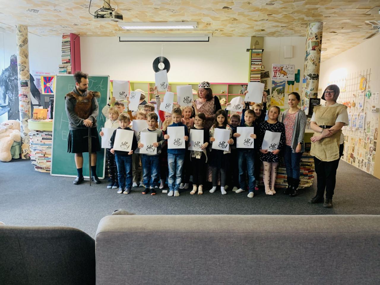 Nechyběli ani rytíři, rodiče a prarodiče, kteří své malé čtenáře na tento slavnostní akt doprovodili.