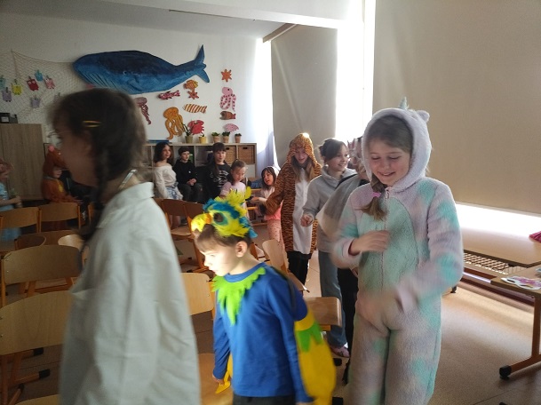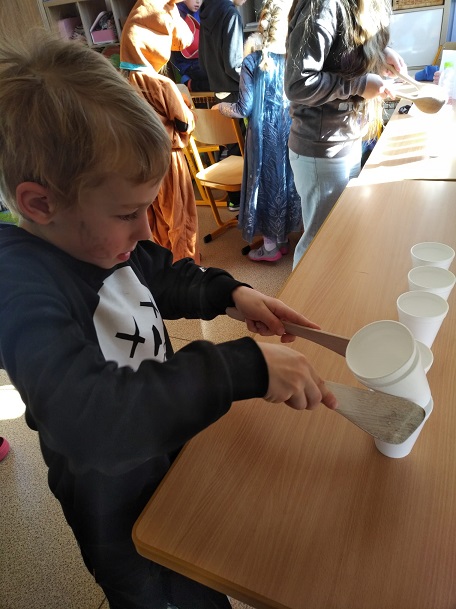 Karnevalové dopoledne v přípravné třídě bylo opravdu pestré a hravé. Třída V. C totiž nachystala pro předškoláky soutěže, písničky, občerstvení. Užili jsme si zábavu, tanec, vyzkoušeli jsme si hry na obratnost a přesnost. Společně strávený čas byl prima.
