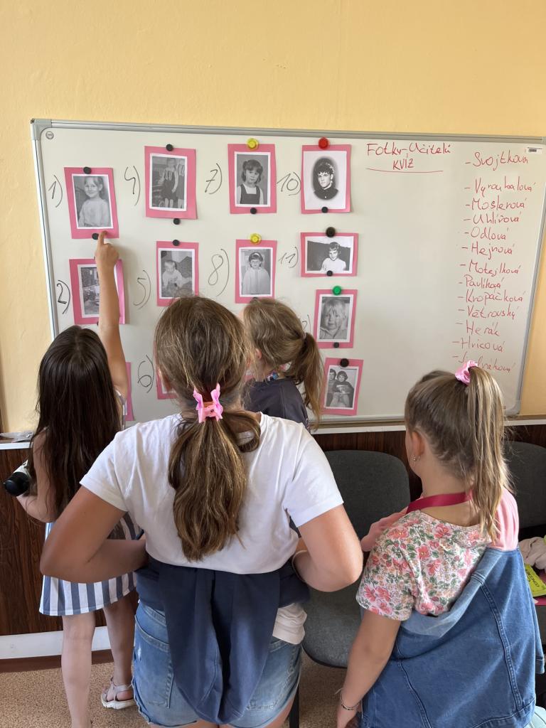 Velkou pozornost si získala výstava fotografií učitelů z jejich dětství. Děti se snažily uhodnout, kdo je kdo – a často byly jejich tipy opravdu originální!