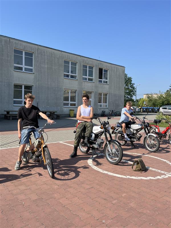 Před školou čekalo velké překvapení – skutečné historické motocykly. Kromě obdivování techniky si děti vyslechly zajímavý výklad o historii jednotlivých strojů.