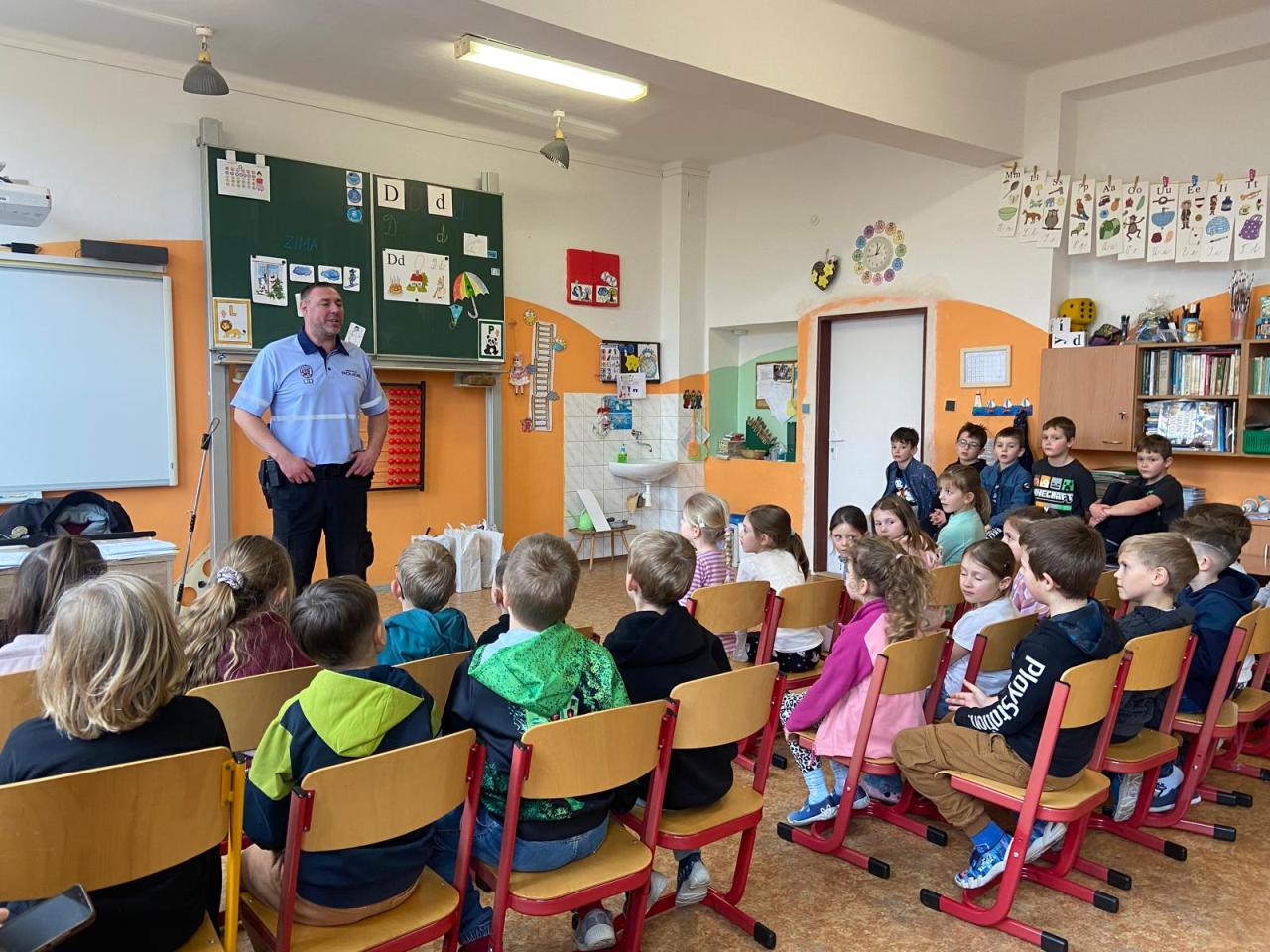 Se zástupcem městské policie si děti 2. a 7.oddělení ŠD prošly základy bezpečného chování v různě nastavených situacích. Následně vypracovávaly tématické pracovní listy a také si za odměnu odnesly reflexní pásky a samolepy.