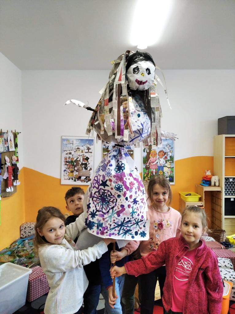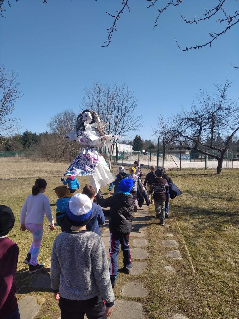 První jarní den jsme s dětmi 2.odd. vynášeli Morenu - bohyni zimy, které končí vláda a uvítali na pomyslném trůnu její sestru Vesnu. Děti vše společně vyráběly a malovaly a naučily se i tradiční říkadla, která na cestu Moreně několikrát pověděly. Radostně jsme tak přivítali jaro.