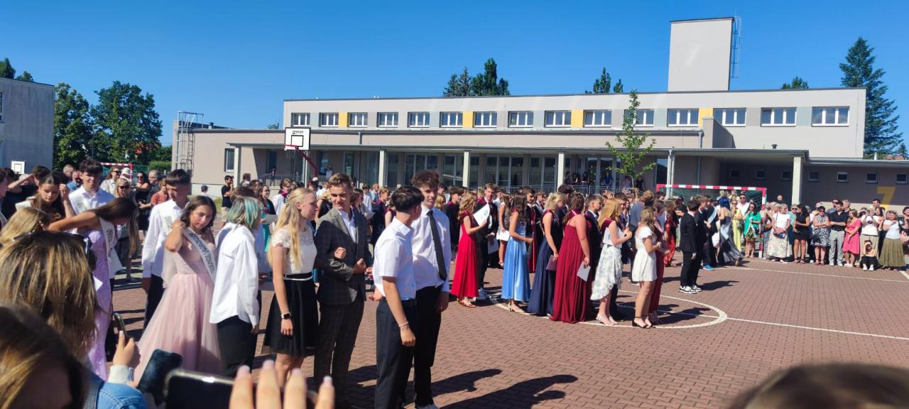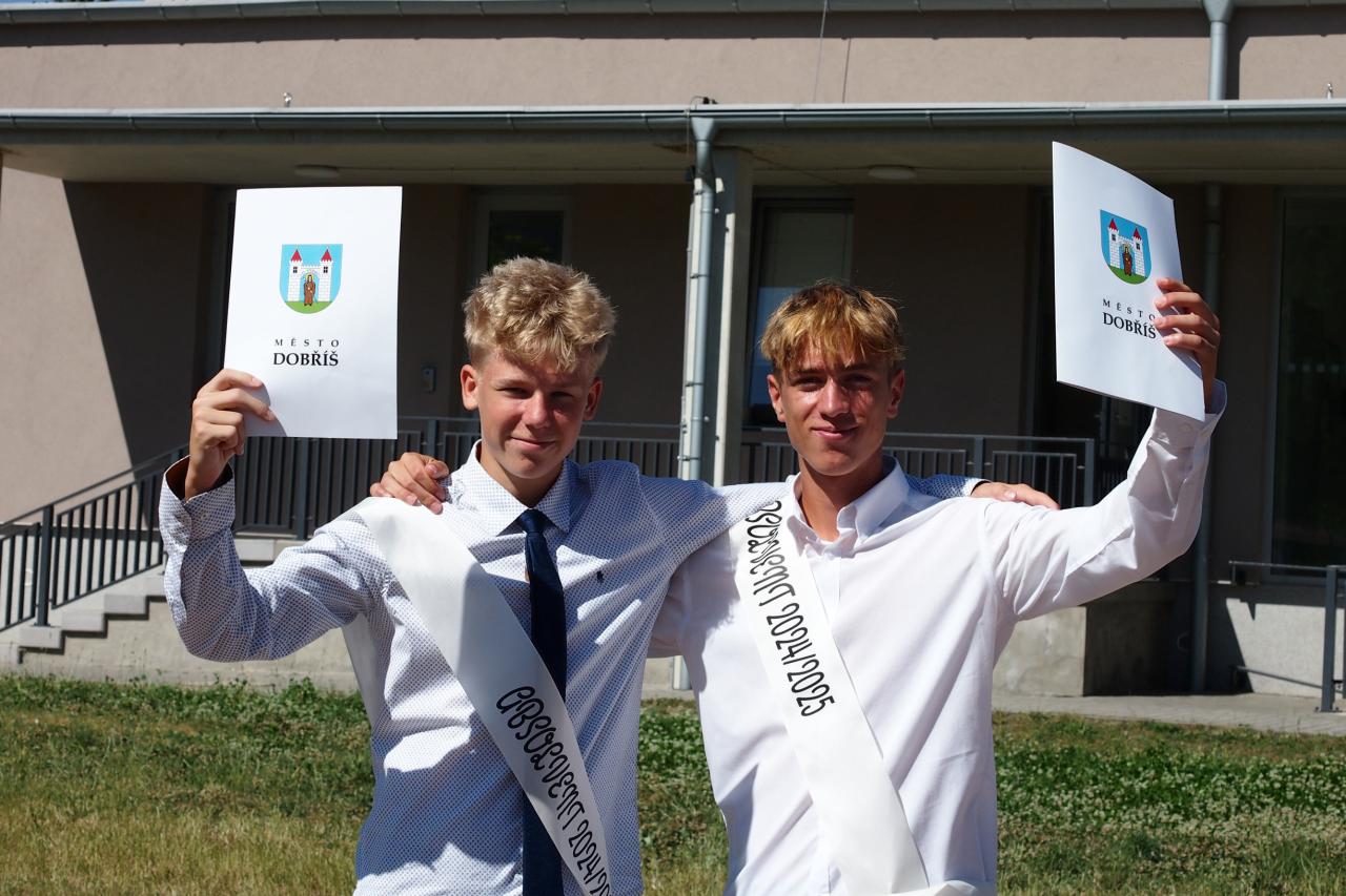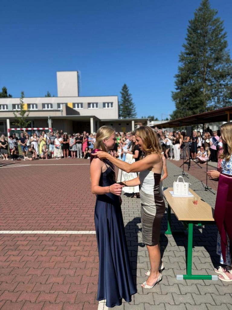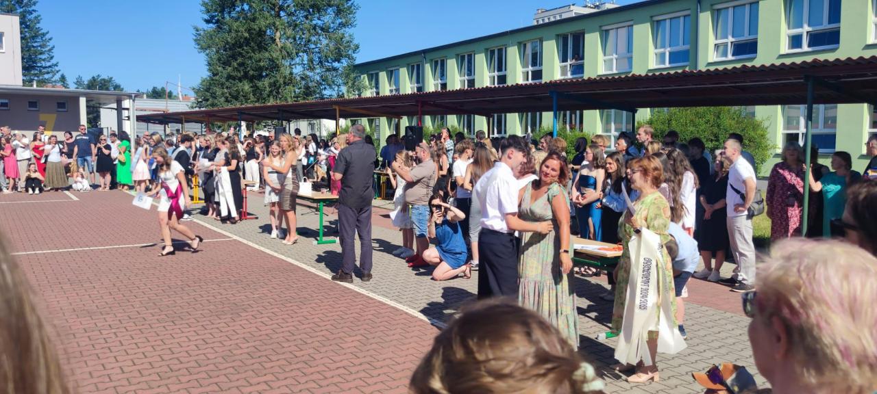 Naši deváťáci se naposledy společně setkali ve škole, vyslechli si slova poděkování a povzbuzení od vedení školy i třídních učitelů a za potlesku svých blízkých převzali svá poslední vysvědčení ze základní školy. Nechyběly květiny, objetí ani slzy dojetí.