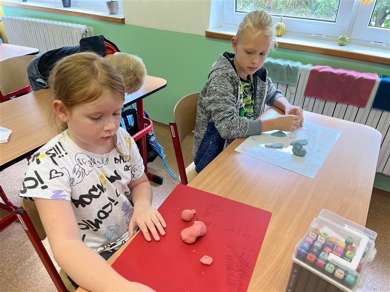 Paní vychovatelka pro děti připravila domácí plastelínu, se kterou si všichni s chutí pohráli.