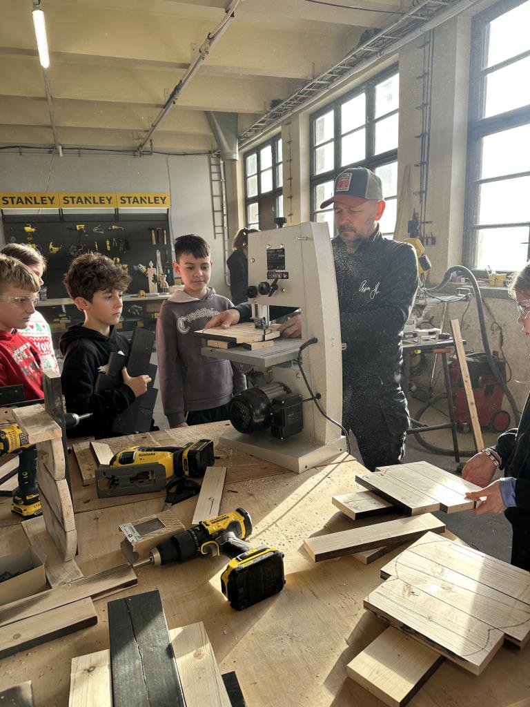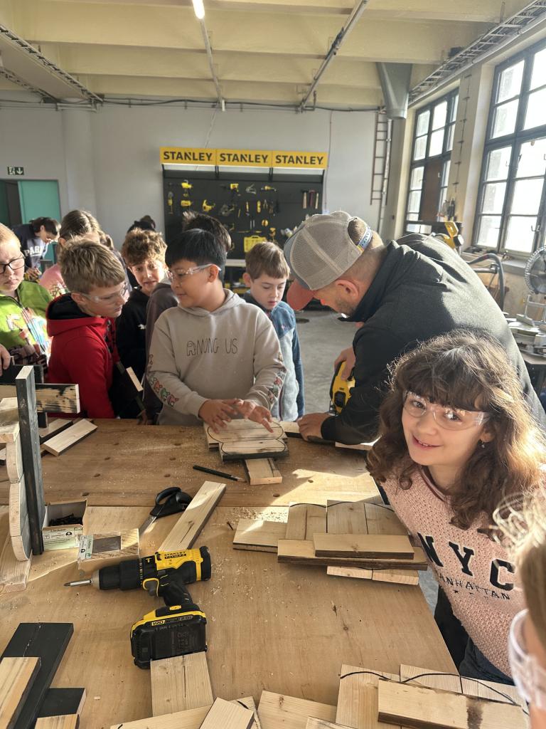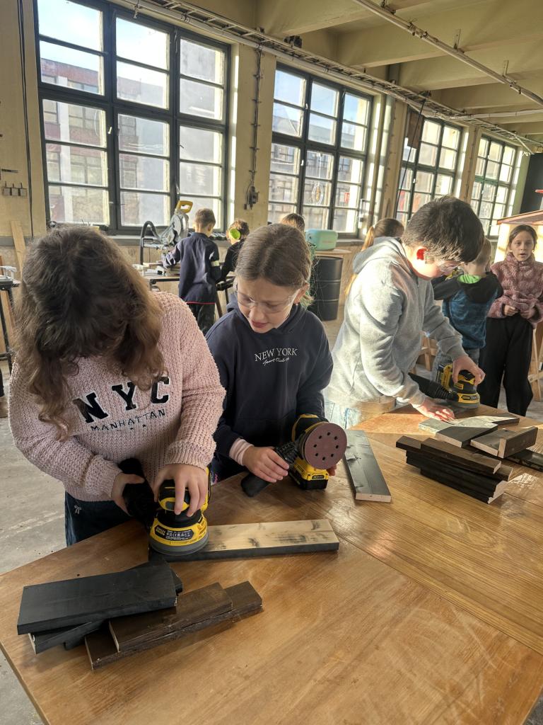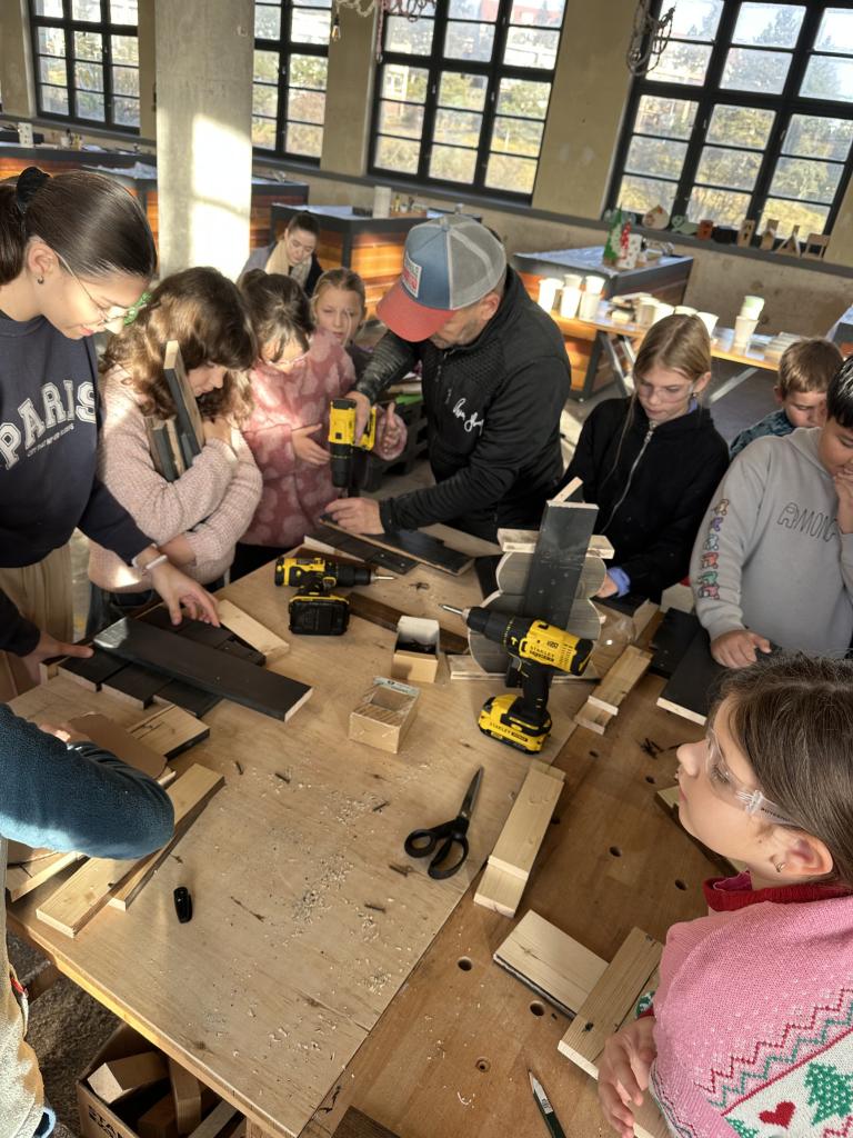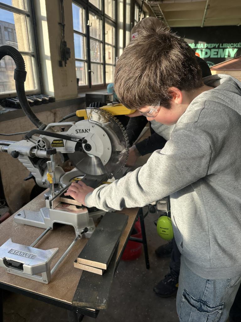 Hned po příchodu se s obrovským nadšením žáci pustili do práce. Měli totiž jedinečnou možnost vytvořit si vlastního dřevěného sněhuláka úplně od základu.