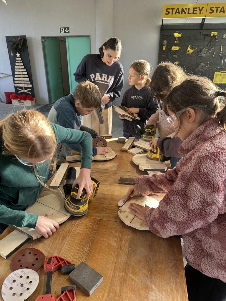 Postup byl propracovaný a děti si vyzkoušely všechno, co k řemeslné výrobě patří. Nejprve nařezaly prkna, která poté pečlivě zbrousily dohladka. Následovalo připevnění jednotlivých dílů k sobě, aby vznikl základ pro budoucí postavičku. Potom si na dřevo obkreslily obrys sněhuláka, s vervou se pustily do vyřezávání tvaru a nakonec přišla chvíle, na kterou se všichni těšili nejvíce – malování podle vlastní fantazie.