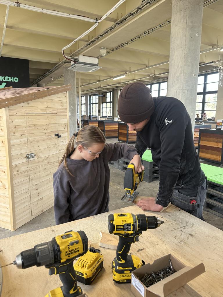 Hned po příchodu se s nadšením pustily do práce – měly totiž možnost vybrat si, zda si vyrobí dřevěného papouška, nebo kravičku.