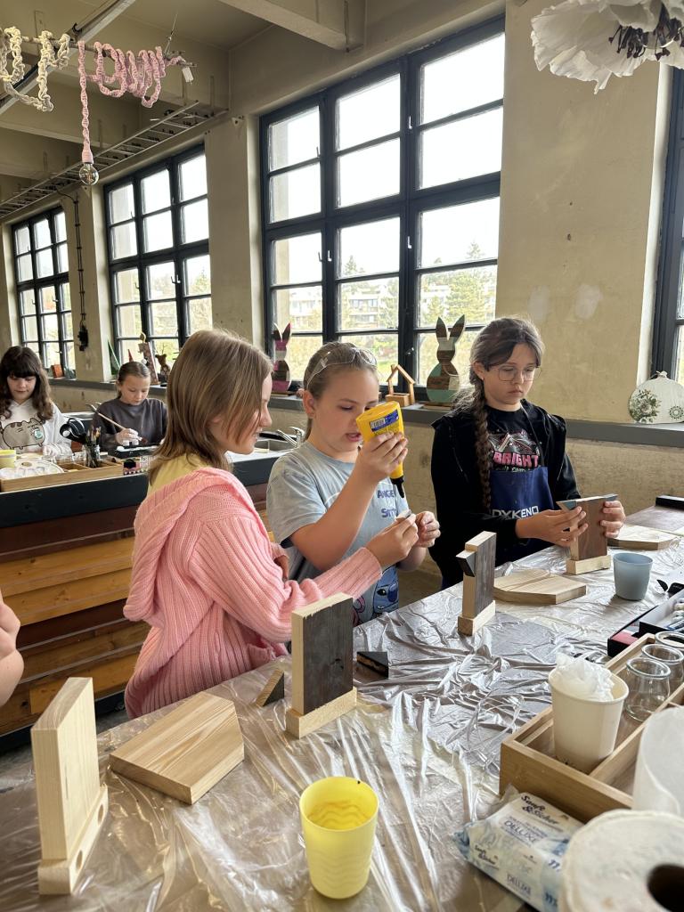 Nejprve si děti nařezaly dřevo na potřebné části, které následně pečlivě obrousily. Poté jednotlivé díly slepily k sobě, čímž vznikl základ jejich výrobku. Nakonec přišla na řadu nejoblíbenější část – malování, při kterém mohly naplno využít svou fantazii a kreativitu.