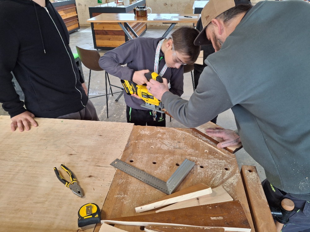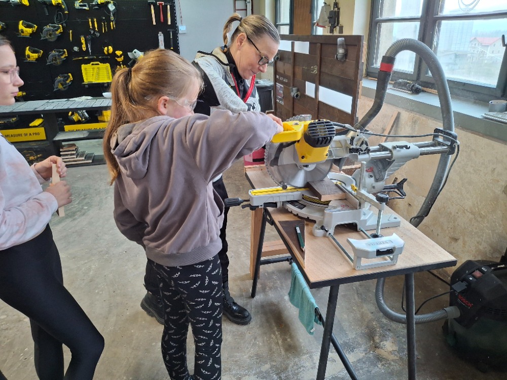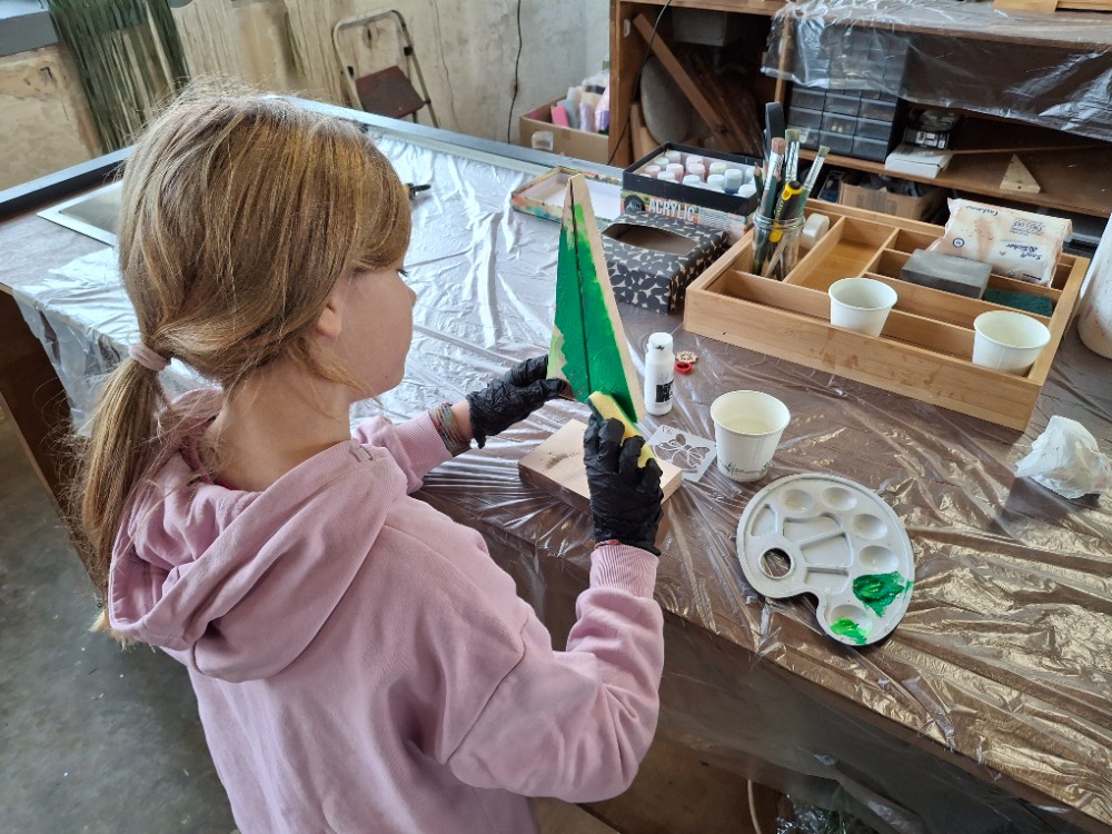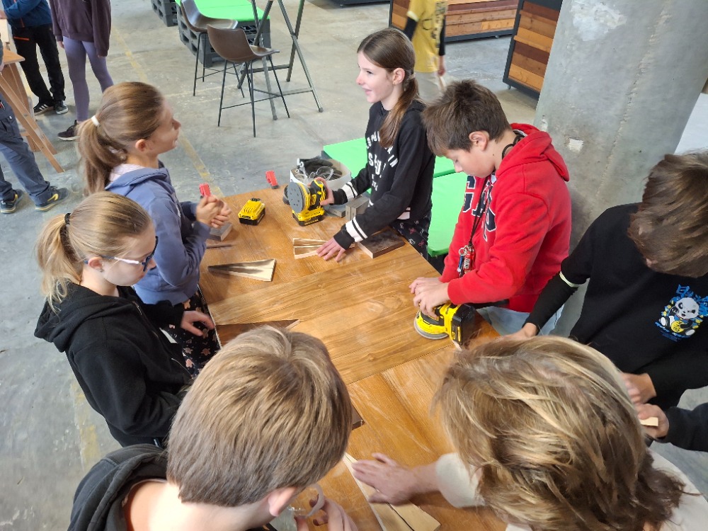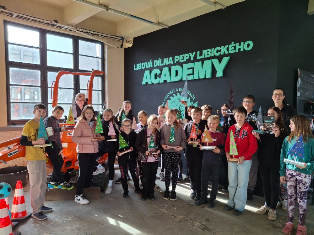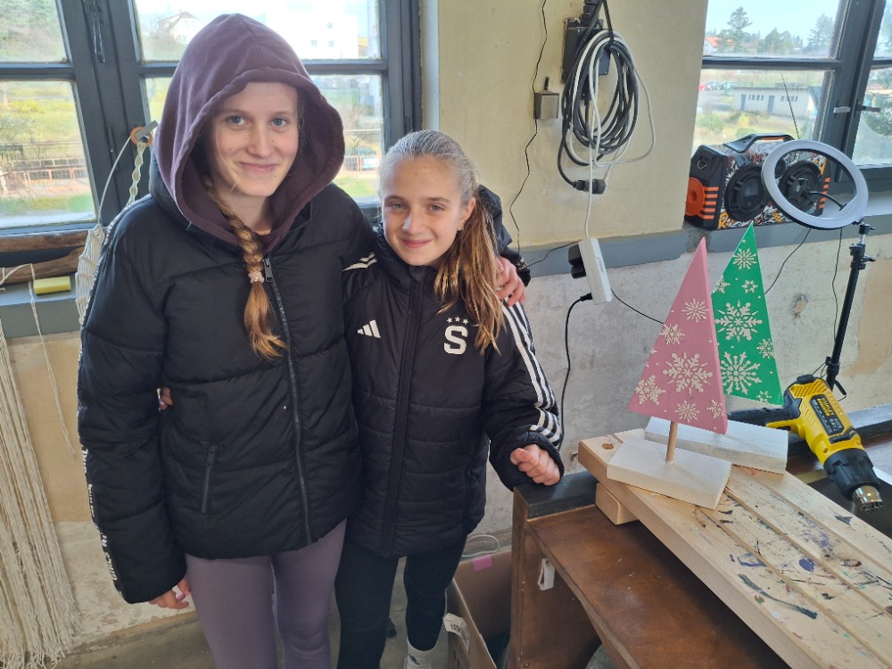 Během tří hodin žáci vyrobili krásné vánoční dekorace - originální stromečky ze dřeva. Postupnými kroky od řezání přes broušení, lepení, natírání a zdobení vytvořily děti vlastní výrobek, který si odnesly domů.